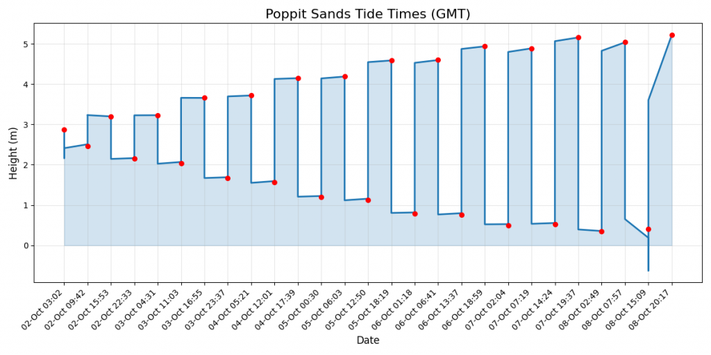 All times are in GMT. Graph below shows tide heights for the next 7 days.