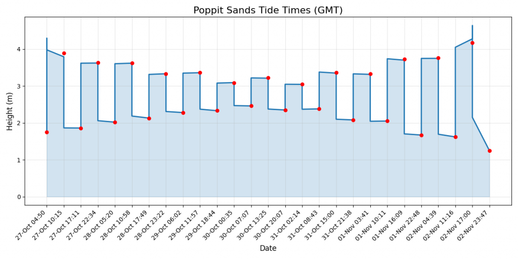 All times are in GMT. Graph below shows tide heights for the next 7 days.