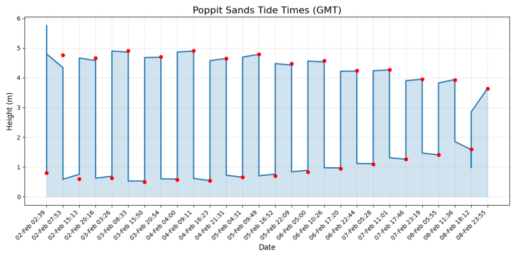 All times are in GMT. Graph below shows tide heights for the next 7 days.