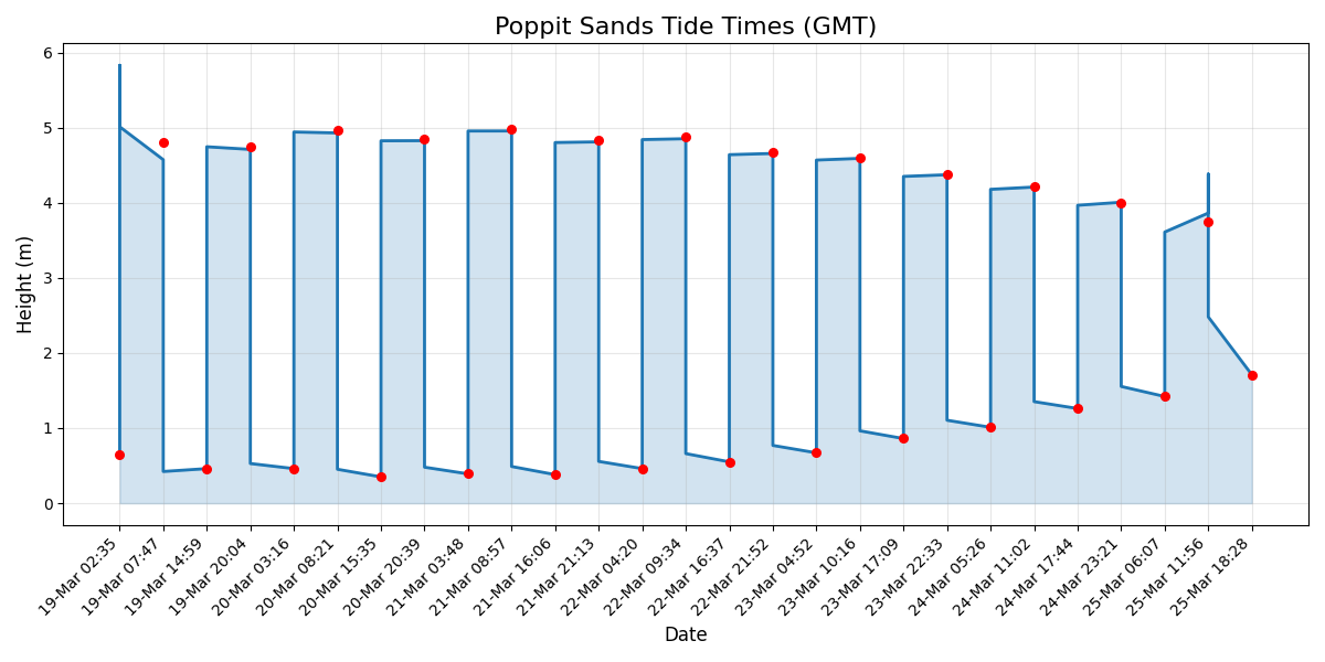All times are in GMT. Graph below shows tide heights for the next 7 days.