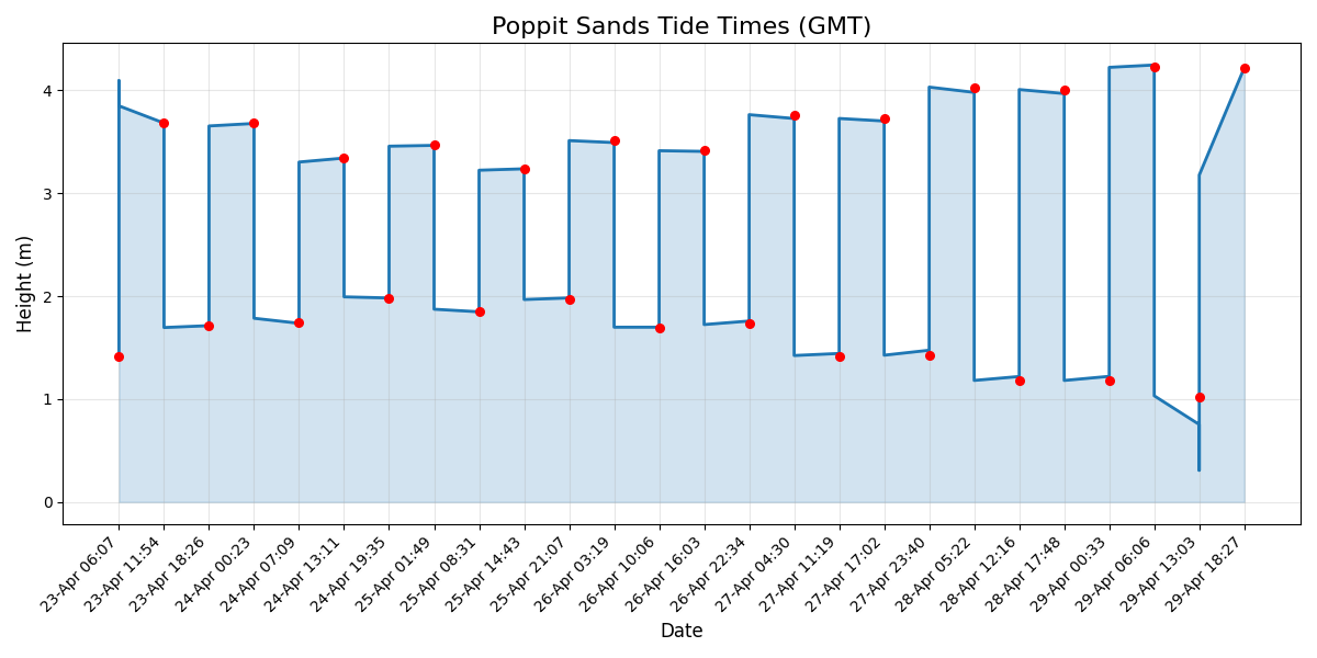 All times are in GMT. Graph below shows tide heights for the next 7 days.